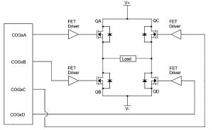 Głównym zadaniem COG jest konwersja standardowego sygnału PWM na podwójny sygnał komplementarny PWM, który następnie jest wykorzystywany do sterowania np. mostkami typu H (rysunek 2). Samo wytwarzanie sygnału komplementarnego nie jest czymś nadzwyczajnym - moduł COG potrafi o wiele więcej. Można zdefiniować dwa oddzielne zdarzenie wejściowe (input event).
