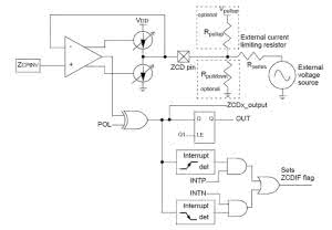 Wykrycie przejścia przez zero ustawia flagę przerwania ZCDIF i jeżeli przerwanie jest odblokowane, to zostanie zgłoszone i obsłużone. Detekcja przejścia przez zero może być na przykład wykorzystana do sterowania mocą przez układy tyrystorowe, ale również do mierzenia okresu przebiegu prądu przemiennego.