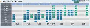 Serie F13 i F14 są kompatybilne pod względem wyprowadzeń oraz programowym, przy czym F14 mają pamięci Flash i RAM mieszczące więcej danych, chociaż są oferowane w tych samych obudowach. Dodatkowo, zawierają: komparator, przetwornik A/C oraz ELC (Event Link Contoller) pozwalający na interakcję między układami peryferyjnymi, bez generowania przerwań (rysunek 2).