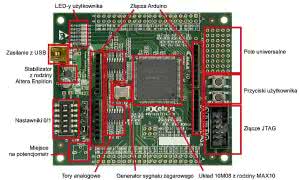 FPGA w świecie ArduinoUkład FPGA zastosowany w prezentowanym zestawie startowym ma zasoby pozwalające na samodzielną implementację systemu mikroprocesorowego, bazującego (na przykład) na dostępnym bezpłatnie, 32-bitowym rdzeniu NIOS II (wersja "e") firmy Altera. W ten sposób można testować duży mikroprocesor zaimplementowany w FPGA z tanimi i łatwo dostępnymi peryferiami znanymi fanom Arduino. |