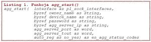 Start biblioteki oraz połączenie z serwerem AggreGate realizowane są przy pomocy funkcji agg_start().Funkcję pokazano na listingu 1, a opis argumentów umieszczono w tabeli 2.