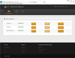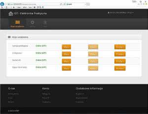 Stronę służącą do konfigurowania Agenta wykonano w PHP przy użyciu frameworka Yii. Natychmiast po zalogowaniu się, użytkownik otrzymuje dostęp do listy swoich urządzeń (Agentów) wraz z udostępnionymi funkcjami. U nas jest to wyłącznie kontrola przekaźnika (rysunek 12).