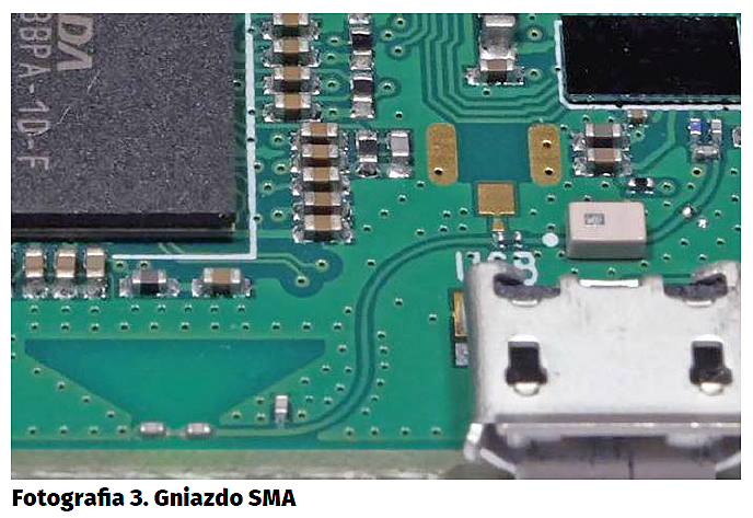 Po bliższych oględzinach płytki można zauważyć ponad gniazdem USB miejsce na wlutowanie złącza SMA (fotografia 3) dla anteny zewnętrznej, co umożliwi korzystanie z Wi-Fi, gdy Zero musi być zamknięte np. z przyczyn środowiskowych w metalowej obudowie.