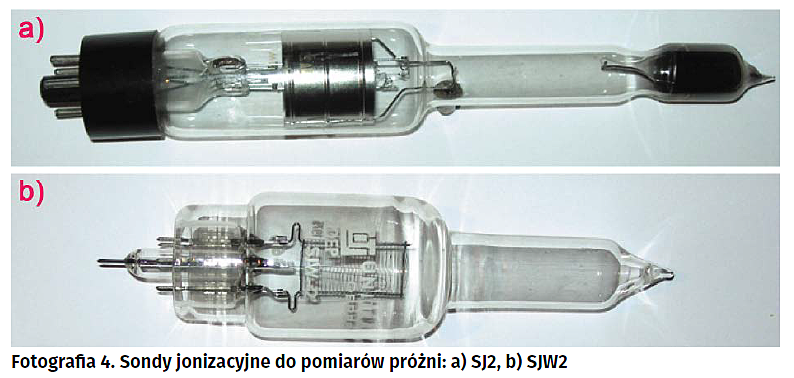 Wśród projektów publikowanych w Elektronice Praktycznej znalazło się kilka, które charakteryzowały się swoją oryginalnością. Innym niezwykłym projektem Aleksandra Zawadzkiego był próżniomierz jonizacyjny (EP11/2008) przeznaczony do pomiarów w procesach technologicznych i laboratoryjnych. Autor zastosował w tym urządzeniu sondę jonizacyjną SJW2 produkowaną przez Instytut Tele- Radiotechniczny, dawniej Przemysłowy Instytut Elektroniki. W artykule przedstawiono również sondę jonizacyjną SJ2 produkcji ówczesnego Dolamu (fotografia 4). Parametrów próżni nie da się mierzyć za pomocą stosowanych powszechnie nawet dzisiaj elektronicznych czujników ciśnienia. Za próżnię technologiczną uznaje się ciśnienie rzędu 10-4...10-5 Tr (1 Tr=1 mmHg). Dla przypomnienia normalne ciśnienie atmosferyczne jest równe 760 torów.