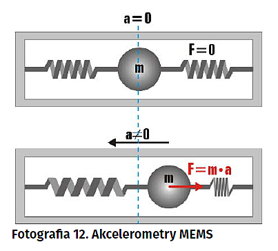 Ostatnią grupą czujników (nie wyczerpującą tematu wszystkich sensorów) są akcelerometry i żyroskopy. Pomiary tych wielkości mogą stanowić dla laika czystą abstrakcję. No bo w jaki sposób można pierwszą zasadę dynamiki Newtona połączyć z elektroniką? Z elektroniką może jeszcze jakoś się da, ale z mikroelektroniką?
