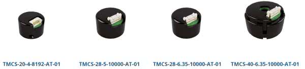Jak wiadomo, silniki krokowe pracują w otwartej pętli, co oznacza, że do określenia pozycji wału nie jest wymagany, przynajmniej teoretycznie, żaden układ sprzężenia zwrotnego. Wystarczy, że układ sterujący będzie samodzielnie zliczał liczbę wykonanych kroków, aby w każdym momencie znać pozycję wału. W wielu przypadkach założenie to, wynikające zresztą z zasady działania silnika krokowego, w praktyce jednak nie sprawdza się. Znany jest efekt gubienia kroków powstający np. w wyniku zakłóceń, zbyt małej wydajności prądowej sterownika czy nadmiernego obciążenia silnika. W takich sytuacjach, szczególnie wtedy, gdy wymagana jest bardzo duża precyzja sterowania ruchem, konieczne jest dołączenie pomiędzy silnik a procesor enkodera, który zawsze dokładnie określi położenie wału. Trinamic uwzględnił taką ewentualność w swoich sterownikach, co więcej – oferuje również kilka enkoderów dostosowanych do swoich wyrobów (fotografia 4). Mają one rozdzielczość od 8192 do 10000 linii (od 32192 do 40000 przyrostów) i pracują z maksymalną prędkością obrotową od 6000 do 7500 obr/min. Zastosowano w nich interfejs ABN o poziomach TTL.