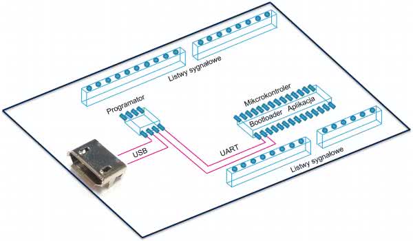 Wszystkie trzy omówione do tej pory elementy warstwy sprzętowej (mikrokontroler, programator, listwy sygnałowe) zilustrowano na rysunku 2.