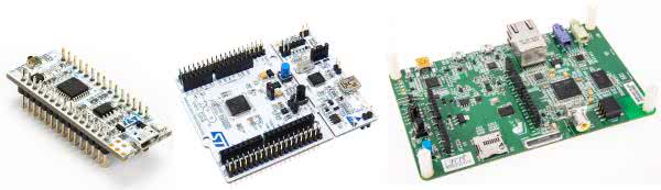 - płytki Nucleo dysponujące głównie mikrokontrolerem i programatorem/debuggerem. Płytki występują w trzech formatach: Nucleo-32, Nucleo-64 oraz Nucleo-144 (liczba informuje ile wyprowadzeń ma obudowa użytego na płytce mikrokontrolera).