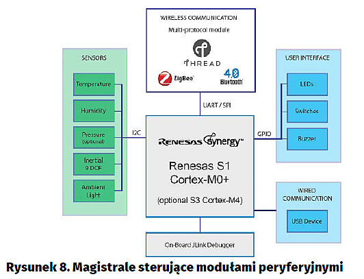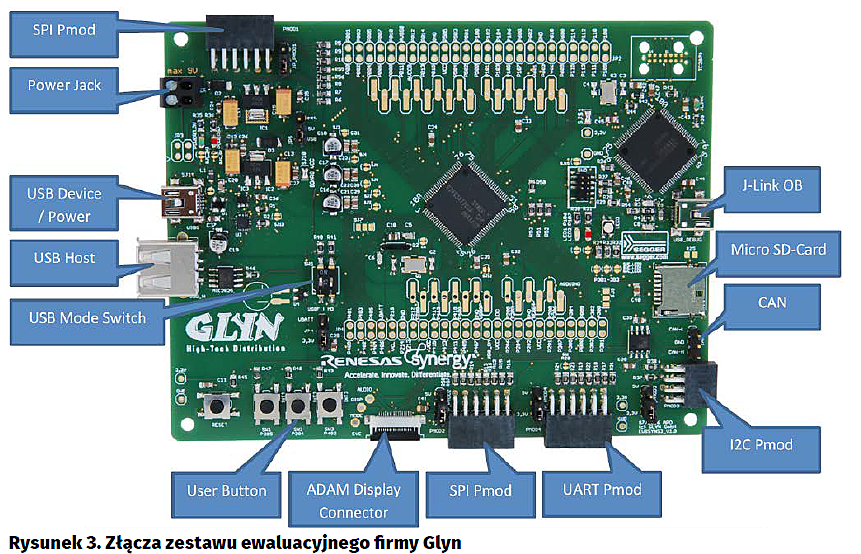 Jednym z elementów wsparcia produkowanych mikrokontrolerów jest oferowanie konstruktorom gotowych zestawów ewaluacyjnych z zamontowanymi układami peryferyjnymi typu wyświetlacze graficzne, interfejsy komunikacyjne RS232 czy RS485, moduły Wi-Fi, Bluetooth itp. Oczywiście, im bogatsze wyposażenie, tym droższy będzie zestaw. Przykładem rozbudowanego zestawu przeznaczonego do testowania mikrokontrolerów z rodziny Synergy jest zestaw SK-S7G2. Jest to dobrze wyposażona płytka Renesasa z mikrokontrolerem S7. Jednak często projektanci poszukują czegoś prostszego i tańszego, bo ich aplikacje nie wymagają wydajności i wyposażenia zawartego w mikrokontrolerze serii S7, ale też często nie potrzebują wbudowanych, zewnętrznych układów peryferyjnych, za które trzeba zapłacić. Dlatego pojawiają się alternatywne, mniej skomplikowane i tańsze rozwiązania niezależnych producentów.