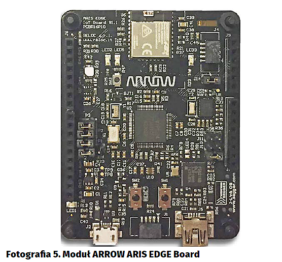 Pokazany na fotografii 5 moduł firmy Arrow jest również dostosowany do podłączania peryferii Arduino. Zamontowano tu tylko złącza standardu Arduino i nie ma dodatkowych goldpinów tak jak w poprzednim module. Wynika to najprawdopodobniej z zastosowania mikrokontrolera Serii S1 R7FS124773A01CFM o mniejszej liczbie wyprowadzeń i z założenia bardzo kompaktowych wymiarów samego modułu.