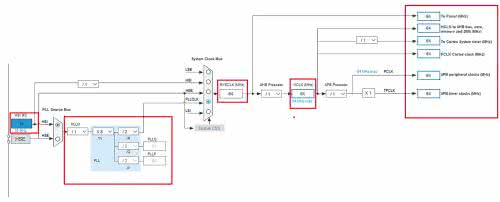 Podstawowym generatorem sygnału zegarowego w wielu mikrokontrolerach jest wbudowany w strukturę, precyzyjny generator RC. To źródło zegara jest powiązane z układem programowanego preskalera, a w jednostkach, które wymagają większej częstotliwości taktowania, dodatkowo jest wbudowany programowany układ PLL do powielania/dzielenia częstotliwości. Generator RC wykonany w strukturze układu scalonego nie jest zbyt dokładny, ponieważ źle radzi sobie ze zmianą temperatury otoczenia. Jednak z czasem dopracowano to rozwiązanie i w STM32G0 stabilność generatora jest na poziomie 1% w zakresie temperatury 0…85°C i +1,5% do -2% w zakresie temperatury -40…105°C. Generator o takich parametrach wystarcza do większości zastosowań. Wybór wewnętrznego taktowania RC pozwala na uproszczenie projektu płytki drukowanej. Na rysunku 3 pokazano konfigurację taktowania z wykorzystaniem oscylatora RC HSI o częstotliwości 16 MHz. Tę częstotliwość powielono ×8 w układzie PLL i następnie podzielono przez 2. W wyniku tych operacji częstotliwość taktująca mikrokontroler ma wartość 64 MHz.