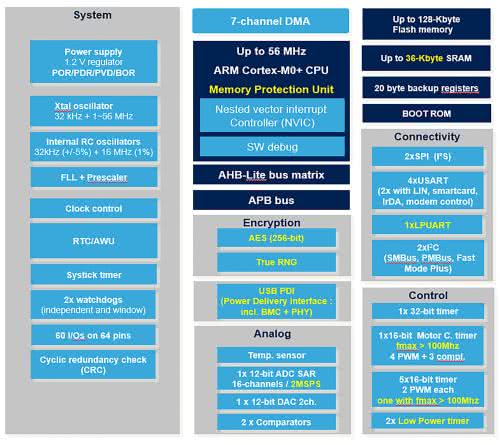 STM32G0 - ulepszona wersja rodziny STM32F0 przejmuje jej wszystkie zalety i dodaje sporo istotnych modyfikacji w postaci uproszczonego, ale bardziej wydajnego rdzenia z pamięcią cache, rozbudowanym sterownikiem pamięci Flash i precyzyjnego zegara taktującego RC HSI. Jeżeli założymy, że jednym z możliwych obszarów zastosowań są aplikacje tradycyjnie zajmowane przez mikrokontrolery 8-bitowe, na przykład z powodu niskiej ceny, to STM32G0 może na tym polu swobodnie konkurować.