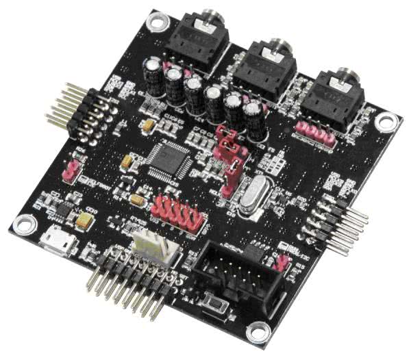 Płytka AudioDSP wyposażona jest w dwa wejścia analogowe (stereo) i cztery wyjścia analogowe (dwa kanały stereo) o poziomie liniowym. Sygnały audio doprowadzone są do DSP poprzez gniazda mini Jack 3,5 mm stereo oraz dodatkowo wraz z zasilaniem 5 VDC wyprowadzone na złącza szpilkowe IN1A, OUT1A, OUT2A. Ułatwia to podłączenie zgodnych modułów rozszerzeń m.in. dla przedwzmacniaczy, mikrofonów MEMS, wzmacniaczy mocy SSM itp.