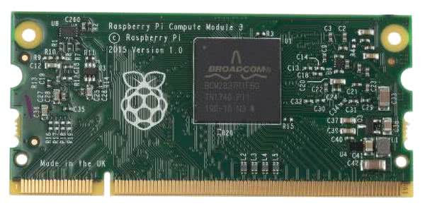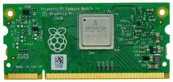 - CM3 – zastępujący CM1, a wprowadzony w styczniu 2017 (fotografia 2), oparty o Soc Broadcom BCM2837 taktowany zegarem 1200 MHz, 1 GB RAM i 4 GB wbudowanej pamięci eMMC Flash. Dostępna jest też wersja CM3Lite, bez wbudowanej pamięci eMMC, który współpracuje z kartą SD, podłączoną do dedykowanych wyprowadzeń modułu SODIMM. Warto wspomnieć, że moduł z wbudowaną pamięcią eMMC nie działa z zewnętrzną kartą SD. Na etapie wyboru nośnika dla systemu należy przemyśleć temat, gdyż zmiany mogą być dosyć kosztowne. Jeżeli mamy możliwość umieszczenia na płytce podstawki pod kartę SD to warto pozostawić możliwość pracy obu typów CM3 i CM3Lite w jednym urządzeniu. Planowana dostępność CM3, CM3Lite określona została na styczeń 2023.