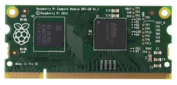 - CM1 – wprowadzony w kwietniu 2014 (fotografia 1), oparty o SoC Broadcom BCM2835 taktowany zegarem 700 MHz, posiadający 512 MB RAM i 4 GB pamięci eMMC Flash. Pomimo, że jest on w dalszym ciągu dostępny i według zapewnień fundacji sytuacja nie zmieni się co najmniej do stycznia 2023, ekonomiczniej jest zastosować wydajniejsze nowsze moduły,
