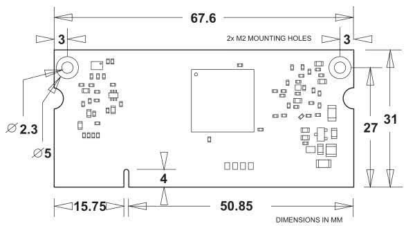 Wymiary modułu pokazuje rysunek 1. Z praktycznie sprawdzonych i pasujących złącz mogę polecić TE Connectivity typu 1473005-4 obowiązkowo z dodatkowymi tulejkami M2 w zaznaczonych miejscach. Tylko taki montaż zapewnia stabilność mechaniczną CM. Niestety nie udało mi się dobrać złącza w wersji pionowej, takiego jak np. Attend 121B-150A00, a taki montaż czasem też jest przydatny. Sprawa rozbija się o uchwyty podtrzymujące płytkę w pionie. Niestety w miejscach, gdzie pamięci mają prostą krawędź umożliwiającą podtrzymanie płytki, CM ma slot przeznaczony do łamania po montażu i uchwyty nie mają stabilnego miejsca zaczepienia (fotografia 4).