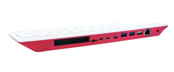 Nowy komputer jest jeszcze bardziej przystępny niż model wypuszczony na początku istnienia Fundacji. Nie straszy zielonym PCB, masą pinów i gołych komponentów. Widzimy klawiaturę i trochę złączy, a więc coś co bez problemu możemy dać nawet dziecku bez obawy, że porazi je prąd.