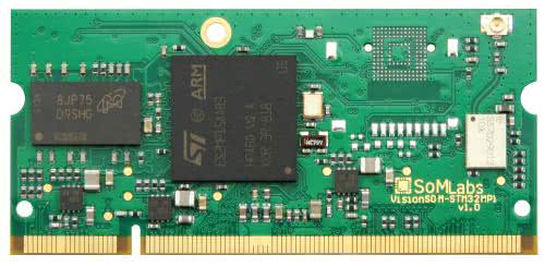 Prezentowane w artykule mikroprocesory – ze względu na wyposażenie i parametry elektryczne oraz termiczne, a także gwarantowany długi czas dostępności – doskonale nadają się do stosowania w aplikacjach przemysłowych. Oferowany przez STM32MP1 potencjał uniwersalności projektanci urządzeń mogą efektywnie wykorzystać dzięki platformom sprzętowym produkowanym przez firmy współpracujące z STMicroelectronics. Jedną z takich firm jest polski producent komputerów embedded – firma SoMLabs – która przygotowuje produkcję miniaturowego komputera z mikroprocesorem STM32MP157 (fotografia 6).