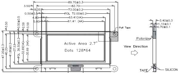 Wyświetlacze z kontrolerem na szkle cechują się mniejszą grubością wszystkich wymiarów zewnętrznych, a dzięki bardziej hermetycznej konstrukcji są bardziej szczelne i odporne na wstrząsy. Wymiary wyświetlacza zostały pokazane na rysunku 1.