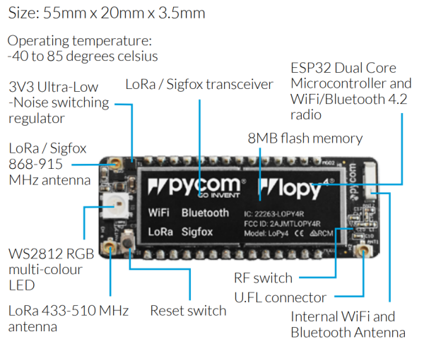 Dużą zaletą modułu jest dobre wsparcie w postaci przystępnej dokumentacji, przykładów i tutoriali dostępnych na stronie producenta pycom. Nie bez znaczenia jest także dobra dostępność modułu u dystrybutora.