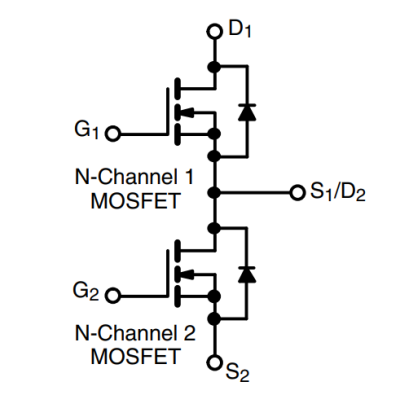 Wśród nich znajduje się podwójny MOSFET oznaczony SIZ240. Może pracować z maksymalnym napięciem VDS = 40 V, maksymalnym prądem drenu 37 A i rezystancją RDS(on) @ VGS = 4,5 V wynoszącą ok 0,013 Ω. Tranzystory mają wspólne wyprowadzenie, które łączy dren jednego komponentu ze źródłem drugiego. Taka konfiguracja jest powszechnie stosowana w różnego rodzaju przetwornicach DC/DC czy sterownikach silników.