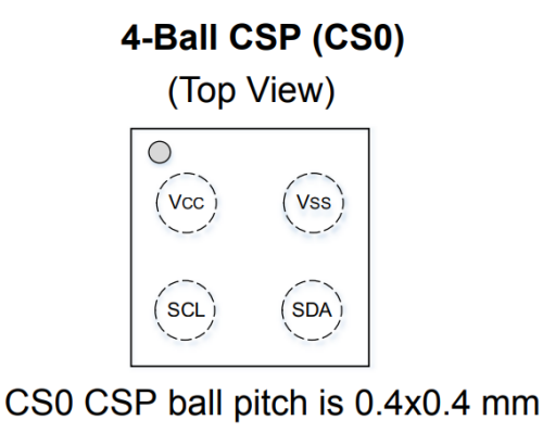Rozstaw wyprowadzeń układu wyznacza siatka 0,4×0,4 mm, tak pokazano na rysunku 1. Co ciekawe - wymiary zewnętrzne obudowy nie są określone w dokumentacji. Zamiast tego znajduje się informacja „Contact Microchip for details”. Niemniej można szacować je na nie więcej niż 0,6×0,6 mm i wysokość nie przekraczającą 0,3 mm.