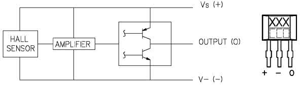 Na rysunku 1 został pokazany uproszczony schemat wewnętrzny oraz opis wyprowadzeń, natomiast na rysunku 2 została pokazana charakterystyka napięciowa czujnika.