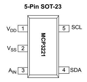 Układ MCP3221 to 1-kanałowy konwerter analogowo-cyfrowy typu SAR o 12-bitowej rozdzielczości. Dostępny jest w niewielkiej obudowie typu SOT-23 i odznacza się niskim poborem prądu, który podczas trwania konwersji wynosi maksymalnie 250 μA, a po przejściu w stan czuwania nie przekracza 1 μA.