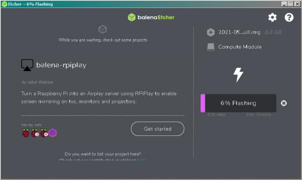 Po podłączeniu do PC i ustawieniu przełącznika BOOT można bezproblemowo zainstalować system w pamięci EMMc (rysunek 1).