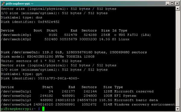sprawdzamy obecność dysku NVMe (rysunek 4), który po zamontowaniu jest widoczny w systemie.