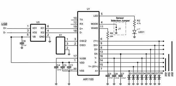 Kontroler AR1100 jest łatwym w integracji rozwiązaniem o niskich kosztach, z zaletami USB Plug and Play - obsługa myszy USB lub digitizera. Producent dostarcza sterowniki do większości systemów operacyjnych oraz pakiet oprogramowania do konfiguracji, kalibracji i testów.