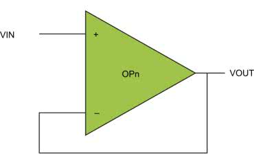 Układ bufora pokazanego na rysunku 8 ma wzmocnienie równe 1, bardzo dużą impedancję wejściową i bardzo małą impedancję wyjściową. Taki układ stosuje się do separacji dwu obwodów, tak by wyjście separowanego układu (wejście bufora) nie obciążało wejścia kolejnego układu (wyjście bufora).