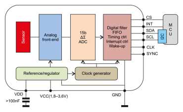 Kolejnym ciekawym przykładem czujnika termostosowego jest układ TPiS 1S 1051 marki Excelitas Technologies. W maleńkiej obudowie o wymiarach zaledwie 3×3 mm (fotografia 2) znalazł się 17-bitowy przetwornik ADC obsługujący właściwy zestaw termopar oraz 14-bitowy ADC, odpowiedzialny za pomiar temperatury otoczenia. Dzięki wykonaniu w technologii MEMS stała czasowa pomiaru temperatury wynosi zaledwie 15 ms, choć bardzo szybkie zmiany temperatury zostaną stłumione przez filtr dolnoprzepustowy o częstotliwości progowej 8 Hz. Układ może być zasilany napięciem w zakresie od 2,4 V do 3,6 V, przy czym pobiera prąd nieprzekraczający 15 μA.