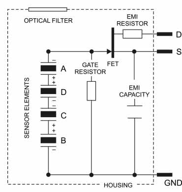 Warto wspomnieć, że czujniki dwuelementowe o opisanej wyżej konstrukcji są produkowane w obudowach z jednym tylko oknem optycznym (fotografia 6), a - co więcej - taką samą formę mogą też przyjmować czujniki czteroelementowe (rysunek 3).