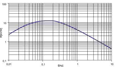 Niezależnie od konstrukcji wewnętrznej, w większości przypadków omawiane sensory PIR są relatywnie powolne pod względem dynamiki odpowiedzi - na tłumienie szybkich zmian sygnału wpływa bowiem zarówno pojemność samego elementu piroelektrycznego (mającego wszak postać kondensatora płaskiego), jak i wejściowa pojemność wbudowanego tranzystora FET oraz jego wysoka rezystancja bramki. Z tego też względu popularne, dwuelementowe czujniki PIR odpowiadają na zmiany promieniowania ze stałą czasową rzędu nawet jednej sekundy. Dodatkowo, efekt zanikania sygnału (spowodowany upływnością oraz rozładowaniem przez rezystancję bramki FET i wewnętrznego rezystora wysokoomowego) sprawia, że charakterystyka częstotliwościowa sensorów piroelektrycznych jest także ograniczona od dołu - wszystkie efekty, nałożone na siebie, dają w rezultacie krzywą odpowiadającą filtrowi pasmowoprzepustowemu (rysunek 5).