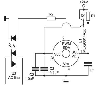 Mowa rzecz jasna o nieśmiertelnym sensorze MLX90614 (fotografia 1), a raczej o całej rodzinie podzespołów, obejmującej modele różniące się napięciem zasilania (3 V lub 5 V), dokładnością (standardowa lub medyczna), zakresem temperatur pracy, konstrukcją detektora (jedno- lub dwustrefowy bądź wersja z kompensacją gradientu), a także kątem widzenia (5, 10, 12, 13, 35, 70 lub 90 o). Produkt doczekał się tysięcy implementacji w urządzeniach komercyjnych i chyba jeszcze większej ilości zastosowań amatorskich - szerokie możliwości konfiguracji, możliwość pracy zarówno z interfejsem I²C, jak i wyjściem PWM, a także tryb termostatu (pozwalający na bezpośrednie sterowanie układem wykonawczym - patrz rysunek 1) sprawiają, że czujniki z serii MLX90614 mają się na rynku doskonale i nic nie wskazuje, by miało się to w najbliższych latach zmienić.