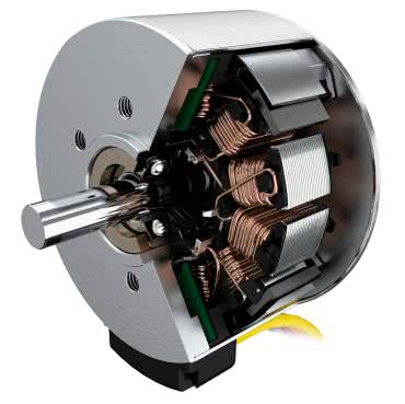 Inny przykład nowoczesnych napędów o doskonałych parametrach i kompaktowych wymiarach stanowią silniki BLDC z serii 3216 ... BXT H (fotografia 10), także produkcji Faulhaber. 14-biegunowa konstrukcja z zewnętrznym rotorem zapewnia wysoki moment obrotowy i niewielki wymiar podłużny obudowy, co ułatwia integrację w konstrukcjach lekkich ramion robotycznych, także przy zastosowaniu zewnętrznych enkoderów oraz przekładni. Długość obudowy silników z omawianej serii mieści się w przedziale od 14 do 21 mm.