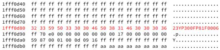 Analiza listy zasobów sprzętowych mikrokontrolera TW32F003, jego zakresu napięcia zasilania oraz rozkładu wyprowadzeń pozwoliła na identyfikację układu. Okazuje się, że mikrokontroler TW32F003 to rebrandowany układ typu PY32F003F18P6 produkcji Puya Semiconductor, do którego pamięci Flash został wgrany dodatkowy bootloader obsługujący platformę http://haohaodada.com, natomiast wyprowadzenie nRST/PF2 zostało skonfigurowane jako port I/O. Potwierdza to kod identyfikacyjny, znajdujący się w pamięci systemowej mikrokontrolera pod adresem 0x1FFF 0D80 – 0x1FFF 0D8F (rysunek 3).
