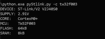 Użycie programatora-debuggera ST-Link wraz z programem pyStlink do programowania innych mikrokontrolerów niż układy STM32 było już szczegółowo opisywane na łamach „Elektroniki Praktycznej” [4], dlatego też informacje o samym pyStlink, jego obsłudze, jak również sposobie dodawania nowych mikrokontrolerów nie będą tutaj powtarzane – zainteresowanych Czytelników zachęcamy do lektury wspomnianego artykułu. Niniejszy opis skupia się na implementacji w programie pyStlink obsługi układu TW32F003, która okazała się nieco bardziej złożona, niż w przypadku omówionych we wspomnianym artykule układów typu HC32F003/HC32F005. Gwoli przypomnienia, dodanie w programie pyStlink obsługi nowego mikrokontrolera wymaga przygotowania opisu tego układu oraz napisania sterownika obsługi jego pamięci Flash.