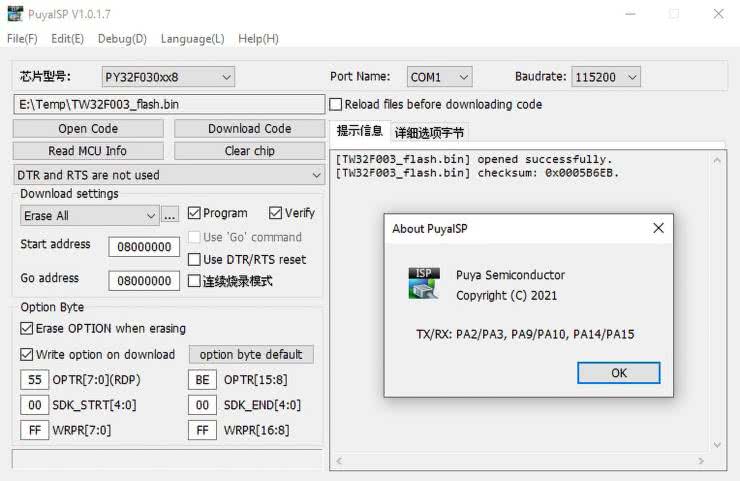 {‘type’: ‘PY32F003XX8’, ‘flash_size’: 64, ‘sram_size’: 8, ‘eeprom_size’: 0,