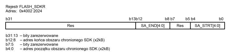 Strukturę rejestru z konfiguracją obszaru chronionego SDK w pamięci Flash pokazuje rysunek 11.