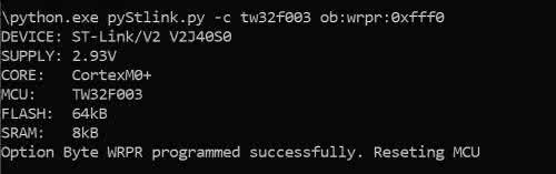 raise lib.stlinkex.StlinkException(‘Writing Option Byte %s failed’