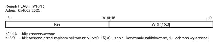 - blokady sektorów pamięci Flash przed zapisem (WRP address).
