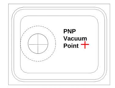 Przy automatycznym montażu SMT mikrofonów z górnym portem należy zwrócić uwagę, by dysza podciśnieniowa pobierająca element nie zasłaniała otworu akustycznego mikrofonu. Chwycenie komponentu dyszą próżniową w pobliżu otworu może uszkodzić membranę poprzez działanie nagłej różnicy ciśnień. Producenci często wskazują w dokumentacji zalecane punkty trzymania – np. obszar obudowy oznaczony symbolem, z dala od otworu (fotografia 8, rysunek 15).