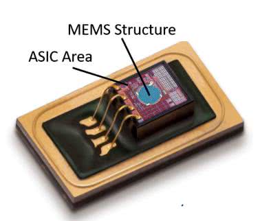 Podstawowa technologia stosowana (już od wielu lat) do produkcji mikrofonów MEMS opiera się na pomiarze zmian pojemności pomiędzy delikatną membraną, a stałą (nieruchomą) płytką perforowaną, pełniącą rolę drugiej okładziny kondensatora płaskiego. W widoku mikroskopowym tego rodzaju sensora zwraca uwagę charakterystyczna, zwykle okrągła struktura, umieszczona w bloku krzemowym znajdującym się tuż obok układu ASIC – to właśnie ów kondensator (fotografia 4).