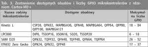 Istotnym parametrem wpływającym na przydatność mikrokontrolera do danej aplikacji są zintegrowane w nim peryferia. Z tego względu rodzaj i liczba peryferiów jest następnym kryterium, które przyjęto do porównania mikrokontrolerów z rdzeniem Cortex-M0+. Zestawienie przedstawiono w tabeli 7.