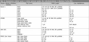 W zestawieniu dla kodu pętli while(1) oraz algorytmu (test Core-Mark) przedstawiono wyniki odnoszące się do profilu Default mode, zgodnie z przyjętą koncepcją porównywania podstawowych trybów aktywnych i ich domyślnej konfiguracji. Zaznaczyć jednak należy, że podane wartości zostały zmierzone dla napięcia zasilania wynoszącego nie 3, a 3.3 V oraz, że układ nie pracował z częstotliwością maksymalną 30, a 24 MHz (tylko dla przypadku kodu algorytmu).
