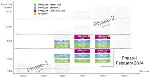 Na rysunku 4 pokazano produkowane już modele mikrokontrolerów STM32L0, a także planowane ich wdrożenia z podziałem na fazy. Mikrokontrolery wyposażone w pamięć Flash o pojemności powyżej 128 kB będą miały dzieloną ja na dwa segmenty, co ułatwi m.in. wymianę firmware’u.