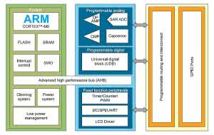 Aktualnie w ofercie producenta są zestawy zawierające mikrokontrolery CY8C4245AXI i CY8C4125AXI. Dla przypomnienia, budowę wewnętrzną układów rodziny PSoC4 pokazano na rysunku 1, a porównanie podstawowych parametrów tych mikrokontrolerów zamieszczono w tabeli 1.