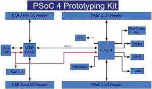 W niektórych komputerach PC może więc być konieczne zaopatrzenie się w kabel przedłużający USB, gdyż dosyć szeroka płytka może zablokować dostęp do pozostałych gniazd USB lub jej dołączenie może być wręcz niemożliwe. Wszystkie wyprowadzenia GPIO mikrokontrolera PSoC4 są dostępne w dwóch rzędach o rozstawie zgodnym z uniwersalną płytką drukowaną lub stykową, co ułatwia samodzielną egzystencję drugiej części zestawu w docelowym układzie prototypowym.